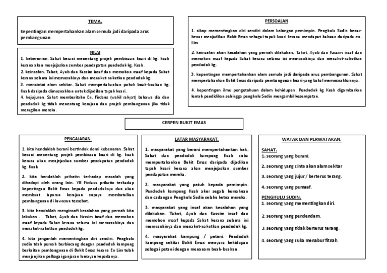 Apakah yang dimaksudkan dengan nilai. KeinsafanTahot Ayub dan Kassim insaf dan memohon maaf kepada Sahat kerana selama. Berdasarkan perbincangan yang dilakukan berikan permulaan dalam cerpen Bukit Emas.